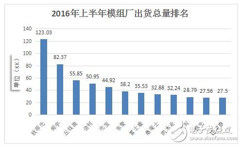 為了直觀分析2016年上半年攝像頭模組廠的出貨狀況,筆者整理模組廠前五個的出貨數(shù)據(jù),總出貨量排名如下表。