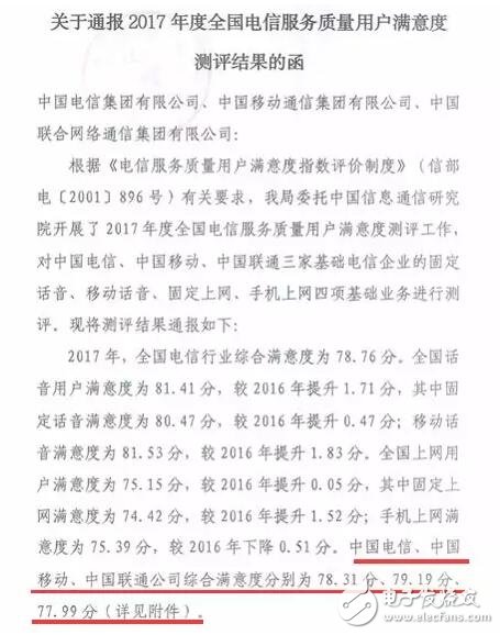 ? ? ??根據(jù)工信部近期下發(fā)的《2017年度全國電信服務質(zhì)量用戶滿意度測評結(jié)果》,中國移動憑借79.19分穩(wěn)居三家運營商之首,中國電信78.31分、中國聯(lián)通77.99分位列二三名。下面就隨嵌入式小編一起來了解一下相關(guān)內(nèi)容吧。