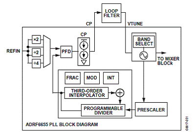 ADRF6655 - Broadband Up/Downconverting Mixer with Integrated Fractional-N PLL and VCO - Analog Devices