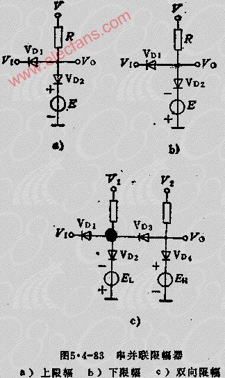 圖1所示的限幅電路中,因二極管是串在輸入、輸出之間,故稱它為串聯限幅電路。圖中,若二極管具有理想