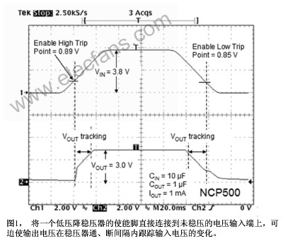 1443 很多低壓降穩(wěn)壓器都帶有一個(gè)使能輸入腳,它可以用作一個(gè)廉價(jià)的電壓監(jiān)控IC。雖然使能腳通常是用于切斷穩(wěn)壓器的輸出以節(jié)省功耗,但增加幾個(gè)分立元件就可以使穩(wěn)壓器輸出控制相應(yīng)輸
