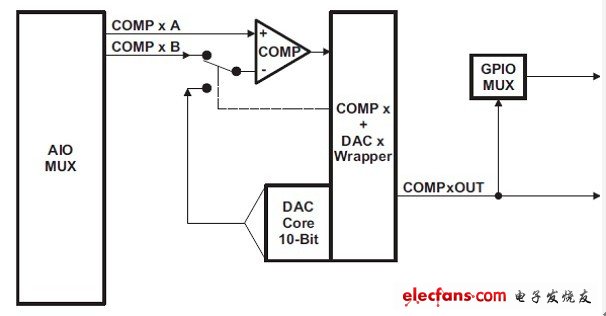 1366 TI 的 Piccolo 微控制器系列提供了兩至三個模擬比較器,我們將關(guān)注 F2802x Piccolo 微控制器系列,該系列配備了兩個比較器。 雖然這兩個比較器都集成到了數(shù)字器件中,但它們的工作方式與