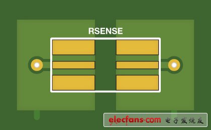 ,但是這些專用電阻卻可能十分昂貴。另外在測(cè)量大電流時(shí),電阻焊盤(pán)的尺寸和設(shè)計(jì)在確定檢測(cè)精度方面起著關(guān)鍵作用。本節(jié)將描述一種優(yōu)化方案,采用一種標(biāo)準(zhǔn)的低成本雙焊盤(pán)檢測(cè)電阻(四焊盤(pán)布局)以實(shí)現(xiàn)高精度開(kāi)爾文電流檢測(cè)。(回顧Resistor-15:檢流電阻的選型和使用)