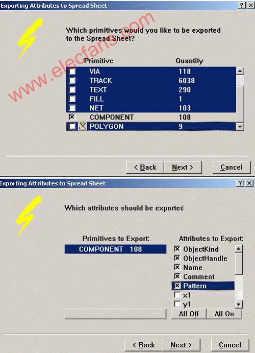 打開(kāi)PCB文件,選擇 Edit-----Export to spread。在彈出圖中選擇如下內(nèi)容: