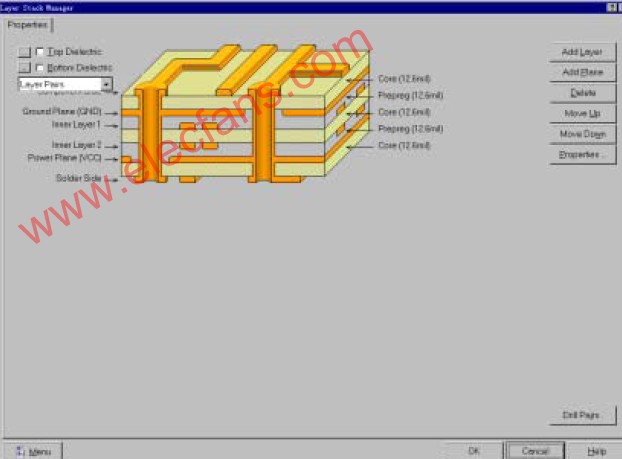 利用Protel99 SE設(shè)計(jì)PCB板,信號層可達(dá)到32個,地電層16個,機(jī)械層16個。我們增加層只需運(yùn)行\(zhòng)Designlayer stack manager功能菜單,就可以看到被增加層的位置。