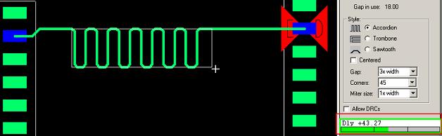 注意:在此用戶可以通過右邊走線長度提示來確定具體繞線的長度