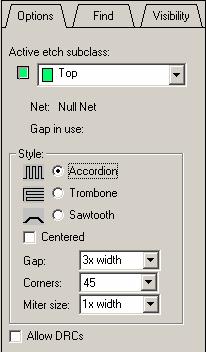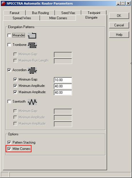在這里可以設(shè)置自動繞線的模式和參數(shù),Miter Corners為45度拐角。