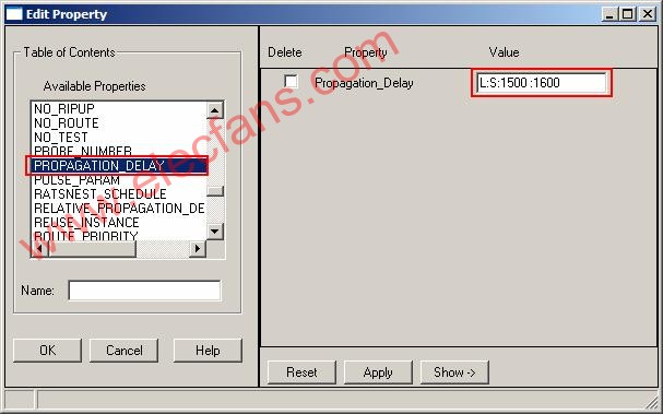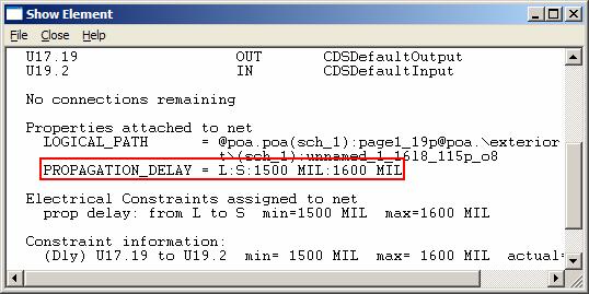 ??? 我們這里舉一個比較簡單的例子,對一個只有一對Pin Pair的網(wǎng)絡(luò)設(shè)定一個絕對長度,可以使用Edit-Properties,對一個Net進(jìn)行定義,添加Propgation_Delay設(shè)定,值為:L:S:1500:1600,這個定義意思為給所選Net一個走線長度限制,范圍為1500mil到1600mil之間,