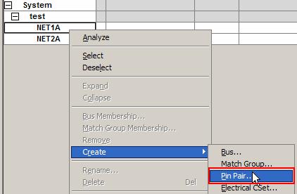 4, 建立需要等長(zhǎng)的Pin Pair, 右鍵點(diǎn)擊需要建立Pin Pair 的Xnet