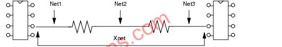 ??? 我們把連續(xù)的幾段由無源元件(如電阻,電容或電感)連接的net合稱為一段Xnet.