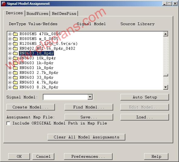 3, 直接在DevType Value/Refdes 中選擇要設(shè)定Model 的器件或直接在板子上點(diǎn)選要設(shè)置Model的器件;