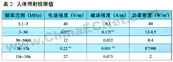 人類的照射限值標(biāo)準(zhǔn)如表2所示。