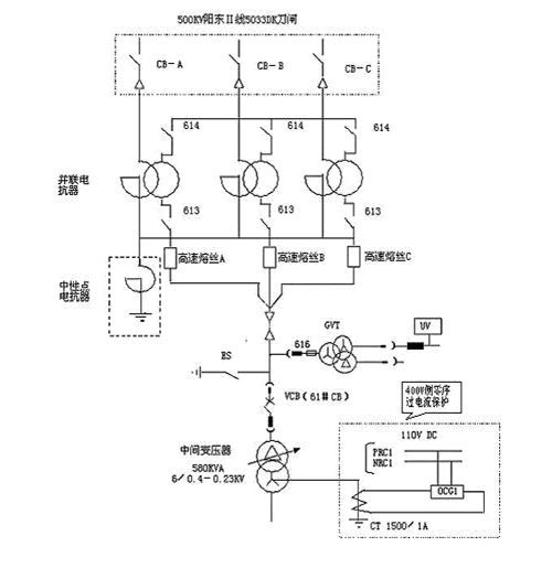 ,與變壓器的匝數(shù)成正比,與繞組的分布有關(guān),繞組的首端、中部和末端均有可能破壞,但以末端較危險(xiǎn)。低壓側(cè)加裝避雷器可以將正、逆變換過(guò)電壓限制在一定范圍之內(nèi)。 高、低壓側(cè)接地分開(kāi)的保護(hù)方式。這種保護(hù)方式的接線為