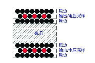 在電阻損耗的控制設(shè)計中,盡量采用多股線替代單根線,從而將變壓器磁芯繞滿。