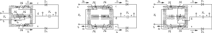 23 要進(jìn)一步提高低壓/大電流電源的功率密度,必須減小二次倒整流管損耗、磁件損耗及磁件體積,提出了采用碰集成技術(shù)和同步整流技術(shù)的正反激電路。支中給出集成磁件的等效