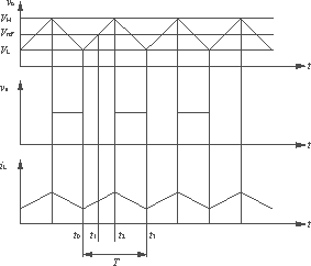 電壓模式控制Buck變換器的控制電路采用PWM控制的方式,輸出電壓與參考電壓Vref經(jīng)誤差放大器產(chǎn)生控制信號vcon。由于鋸齒波上任一點(diǎn)的水平寬度和高度成線性關(guān)系,當(dāng)它和控制電壓vcon比較