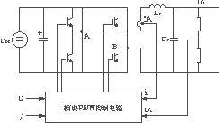 ??? 由圖8可以得到單個模塊的數(shù)學模型如圖9所示。圖9中電壓UAB就是圖8中逆變器兩個橋臂中點A和B兩點之間的電壓,iH為環(huán)流。