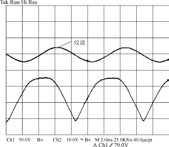 圖5??? 輸入電壓及輸出電壓紋波波形