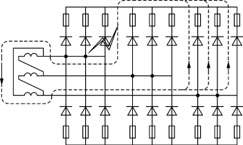 圖7??? 整流器件擊穿時(shí)短路電流流向示意圖