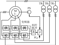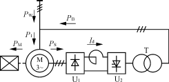 圖3??? 自控式雙饋調(diào)速 ??? 自控工作方式中,轉(zhuǎn)子側(cè)變頻電源的頻率是通過系統(tǒng)內(nèi)的調(diào)節(jié)環(huán)節(jié),根據(jù)電動(dòng)機(jī)的運(yùn)行狀態(tài)(由位置檢測(cè)器PS測(cè)出)自動(dòng)控制的。該方式穩(wěn)定性好,適用于軋鋼機(jī)之類的沖擊負(fù)荷。 ??? 他控方式中,由專門的頻率給定裝置獨(dú)立地控制變頻器的輸出頻率。通常由獨(dú)立的頻率可調(diào)的低頻三相正弦信號(hào)發(fā)生器產(chǎn)生給定信號(hào)。每個(gè)控制信號(hào)的給定值,對(duì)應(yīng)一個(gè)確定的轉(zhuǎn)速。 ??? 改變轉(zhuǎn)子繞組電源的頻率、幅值和相位,就可以調(diào)節(jié)電動(dòng)機(jī)的轉(zhuǎn)矩、轉(zhuǎn)速、和無功功率。雙饋調(diào)速不僅可以在低于同步轉(zhuǎn)速以下運(yùn)轉(zhuǎn),還可以在高于同步轉(zhuǎn)速以上運(yùn)轉(zhuǎn),具有優(yōu)良的調(diào)速性能,過載能力大、轉(zhuǎn)動(dòng)慣量小、效率要高于串級(jí)調(diào)速。它在很寬的調(diào)速范圍內(nèi)都可以得到電動(dòng)轉(zhuǎn)矩和制動(dòng)轉(zhuǎn)矩。其突出優(yōu)點(diǎn)就是在保證調(diào)速要求的同時(shí),還可以獨(dú)立地調(diào)節(jié)電動(dòng)機(jī)定子側(cè)的無功功率,使調(diào)速系統(tǒng)具有很高的功率因數(shù)。其功率轉(zhuǎn)換是采用交—交變頻器,直接進(jìn)行能量交換,所以效率很高,是比較完善的調(diào)速裝置。適用于多種生產(chǎn)機(jī)械,發(fā)展前途非常廣闊。國(guó)外在20世紀(jì)80年代投入運(yùn)行,我國(guó)上個(gè)世紀(jì)90年代開始應(yīng)用。但它也存在諧波電流大的問題。 ??? 6)斬波式內(nèi)反饋調(diào)速這是我國(guó)獨(dú)有的,近十幾年才興起的新方法。它也是通過引入附加電勢(shì)改變轉(zhuǎn)差率的方法。它在串級(jí)調(diào)速的基礎(chǔ)上又有所突破,把著眼點(diǎn)放在調(diào)速主體——電動(dòng)機(jī)上,在電動(dòng)機(jī)定子槽中通過多層嵌套方式安裝了反饋調(diào)節(jié)繞組(這等于把逆變變壓器和電動(dòng)機(jī)巧妙地結(jié)合在一起)。內(nèi)反饋調(diào)速的實(shí)質(zhì)在于將部分轉(zhuǎn)子功率PS(轉(zhuǎn)差功率,見圖4),通過調(diào)速裝置反饋給電動(dòng)機(jī)內(nèi)部的調(diào)節(jié)繞組,反饋的功率越多,則軸輸出功率的就越少,電機(jī)轉(zhuǎn)速越低,即通過改變反饋的轉(zhuǎn)差功率的多少使電動(dòng)機(jī)轉(zhuǎn)速得以連續(xù)調(diào)節(jié)。而調(diào)節(jié)繞組接受反饋功率則意味P1的減少,電能的節(jié)省。