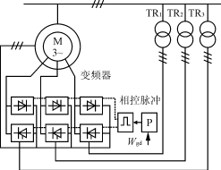 圖1??? 串級(jí)調(diào)速 ??? 5)雙饋調(diào)速??? 也是采用在轉(zhuǎn)子回路引入附加電勢(shì)的方法。不同的是,它將能量分別饋入電動(dòng)機(jī)的定子繞組和轉(zhuǎn)子繞組。定子繞組接入工頻電源,轉(zhuǎn)子繞組接到頻率、幅值、相位和相序都可以調(diào)節(jié)的獨(dú)立的交流變頻電源上。根據(jù)變頻電源頻率控制方法不同,雙饋調(diào)速分為自控式(圖3)和他控式(圖2)兩種。