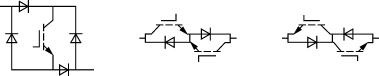 圖 1 風(fēng) 力 發(fā) 電 系 統(tǒng) 基 本 結(jié) 構(gòu) 框 圖 Fig.1 Basic block diagram of WETS ??? 該系統(tǒng)主要由1臺(tái)無刷雙饋異步電機(jī),1臺(tái)交-交變頻器和一套控制裝置組成。其中無刷雙饋電機(jī)的定子接電網(wǎng),轉(zhuǎn)子接變頻器,通過控制轉(zhuǎn)子電流的頻率、幅值、相位和相序,使系統(tǒng)實(shí)現(xiàn)兩個(gè)功能:一是發(fā)電機(jī)在不同的轉(zhuǎn)速下,都能發(fā)出恒頻電能,通過變頻器傳輸至電網(wǎng),即實(shí)現(xiàn)變速恒頻運(yùn)行;二是發(fā)電機(jī)定子端有功功率和無功功率可以獨(dú)立調(diào)節(jié)。那么,作為連接電網(wǎng)和發(fā)電機(jī)的交-交變頻器設(shè)備,其設(shè)計(jì)成為一個(gè)關(guān)鍵,要求它具有優(yōu)良控制性能,結(jié)構(gòu)緊湊,而且具有高功率因數(shù)。 ??? 然而目前流行的交-直-交變頻器和交-交周波變換器,均有其負(fù)面影響——無功功率和諧波污染,需要添加有源濾波和無功補(bǔ)償裝置。因此,開發(fā)“綠色”電力電子變換器,提高功率因數(shù),各次諧波分量小于國際和國家標(biāo)準(zhǔn)允許的限度,顯然這才是一種治本的辦法[1]。 ??? 矩陣變換器具有以下優(yōu)點(diǎn)[2]: ??? 1)可以實(shí)現(xiàn)四象限操作,能量雙向流動(dòng); ??? 2)輸入功率因數(shù)可接近1; ??? 3)無直流中間環(huán)節(jié),不需儲(chǔ)能電容,結(jié)構(gòu)簡單; ??? 4)可獲得正弦波形的輸入電流和輸出電壓,無低次諧波; ??? 5)輸出頻率不受輸入電源頻率的限制; ??? 6)可實(shí)現(xiàn)變速恒頻應(yīng)用。 ??? 基于上述優(yōu)點(diǎn),本新型風(fēng)力發(fā)電系統(tǒng)的交-交變頻器采用矩陣變換器。通過合理設(shè)計(jì),使風(fēng)力機(jī)組直接投入電網(wǎng)運(yùn)行,這為風(fēng)力發(fā)電的廣泛應(yīng)用提供了堅(jiān)實(shí)的基礎(chǔ)。 ??? 矩陣變換器的設(shè)計(jì)關(guān)鍵在于主電路拓?fù)浣Y(jié)構(gòu)的選擇,波形生成及控制電路,箝位保護(hù)電路和其它功能輔助電路的實(shí)現(xiàn)。本文主要對矩陣變換器的拓?fù)浣Y(jié)構(gòu)和基本的箝位保護(hù)電路作了若干類比分析;對波形生成及控制電路和其它功能輔助電路的具體分析將在另文中作進(jìn)一步的研究。 2? 傳統(tǒng)矩陣變換器及其改進(jìn)型的類比分析 2.1? 傳統(tǒng)矩陣變換器分析 ??? 傳統(tǒng)的矩陣變換器由9個(gè)雙向開關(guān)組成,其拓?fù)浣Y(jié)構(gòu)如圖2所示[5]。虛框內(nèi)為箝位保護(hù)電路,將在后續(xù)部分進(jìn)行分析。矩陣變換器所用的雙向開關(guān)有三種結(jié)構(gòu)形式,如圖3所示。
