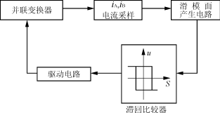 圖3? 滑模變結(jié)構(gòu)控制原理圖 ??? 本滑模面應(yīng)用于并聯(lián)boost變換器,其電路圖如圖1(a)所示,交錯運行仿真波形如圖4所示(f=50kHz,D=0.5,φ=π)。從圖中可以看出,采用滑模變結(jié)構(gòu)進行交錯控制后,單元電流不僅得到均流,總的電流紋波也大大減小,接近于0。