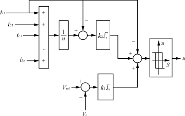 圖4? 變結(jié)構(gòu)控制交錯運行單元電流和總電流 ??? 2)? Sj=k1 ???????????? (j=1,2,…n)。 式中: ??? ΔV=Vref-V0;? ΔiLj= ??? 相應(yīng)的控制率為?? u= ??? 此處ΔiLj可以保證各個并聯(lián)單元的電流相等,達到均流效果。ΔV的積分項可以提供輸出電壓調(diào)整,可以看到所有的滑模面中都有此項,所以每個單元都能完成電壓調(diào)整的功能,因此系統(tǒng)具有較高的穩(wěn)定性。由此可以看出,此種滑模面不僅可以實現(xiàn)電流均流,還會實現(xiàn)良好的電壓調(diào)整。單元滑模面產(chǎn)生的原理圖如圖5所示。