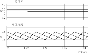 (b)并聯(lián)運行單元電流(下)和總電流(上)