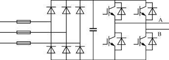 交—交變頻在其主接線中需要大量的晶閘管,故結構復雜,維護工作量較大,并因采用移相控制方式,功率因數(shù)較低,一般僅有0.6~0.7,而且諧波成分大,故需要無功補償和濾波裝置,使得總的造價提高。因交—交變頻采用的技術比較落后,諧波成分大、功率因數(shù)低及調速范圍不寬等自身的原因,在其發(fā)展中面臨著新技術的挑戰(zhàn),在中壓大功率交流變頻領域有被淘汰的趨勢。 2?2交—直—交變頻 在中壓變頻領域交—直—交變頻有多種拓撲結構,如中—低—中方式,其實質上還是低壓變頻,只不過是從電網(wǎng)和電動機兩端來看是高壓。因其存在著中間低壓環(huán)節(jié),故有著電流大、結構復雜、效率低、可靠性差等缺點。該方式是中壓變頻技術發(fā)展中的一種由低壓變頻向中壓變頻過渡的方式。由于其發(fā)展較早,技術也比較成熟,所以目前仍有廣泛的應用,德國西門子、英國西枝來克公司的中壓變頻以此種技術為主。隨著中壓變頻技術的發(fā)展,特別是新的大功率可關斷器件的研制成功,中—低—中方式由于其自身的缺點,在今后的發(fā)展中有被逐步淘汰的趨勢。而直接中壓變頻方式,因沒有中間的低壓環(huán)節(jié),結構上有著廣闊的發(fā)展前景。 以IGCT為主電路器件的ACS1000型中—中變頻器的主電路如圖1所示。從圖中可以看到IGCT既不串聯(lián)也不并聯(lián),并用兩只IGCT代替?zhèn)鹘y(tǒng)的快速熔斷器,其開斷速度為傳統(tǒng)快熔的1000倍,其逆變器也是三電平電路。由于采用IGCT,使該種結構的變頻器的性能得以大幅度提高,IGCT在目前中壓直接變頻領域是最具有創(chuàng)新性和廣闊發(fā)展前景的電力電子器件。 交—直—交變頻中的中—中方式,雖然具有損耗小、無降壓與升壓變壓器等特點,但由于其產生大量的高次諧波,在應用中受到一定的限制。單元串聯(lián)多電平形式,由于它在諧波、效率和功率因數(shù)等方面的優(yōu)勢,在不要求四象限運行時有著較廣泛的應用前景。而三電平控制由于具有以下特點,將成為今后變頻技術發(fā)展的主要趨勢。 1)采用三電平拓撲能有效地解決電力電子器件耐壓不高的問題,由于每一個開關器件承受的關斷電壓僅為直流側電壓的一半,因此它適用于高電壓大功率。 2)三電平拓撲單個橋能輸出三種電平(+Ud/2、-Ud/2、0),線(相)電壓有更多的階梯來模擬正弦波,使得輸出波形失真度減少,因此諧波大為減少。 3)多級電壓階梯波減少了du/dt,使對電機繞組絕緣沖擊減小。 4)三電平PWM方法把第一組諧波分布帶移至2倍開關頻率的頻帶區(qū),利用電機繞組電感能較好地抑制高次諧波對電機的影響。 5)三電平拓撲能產生3×3×3=27種空間電壓矢量,較二電平大大增加,矢量的增多帶來諧波消除算法的自由度,可得到很好的輸出波形。 3中壓變頻技術動態(tài) 3?1多單元串聯(lián)中壓變頻技術 國際上具有研制生產新型大功率中壓變頻裝置能力的均是各大知名電氣公司,諸如美國AB公司、羅檳康(ROBICON)公司和日本東芝公司等,并有搶占我國中壓變頻器市場的趨勢。 近年來,國內外一些公司都在研制新型“無電網(wǎng)污染”的高壓變頻器。據(jù)報道,這類變頻裝置具有高功率因數(shù)、高效率、無諧波污染、無需專用電機等優(yōu)點,在技術上以達到國際先進水平,其三相系統(tǒng)主電路結構如圖2所示。三相高壓電經(jīng)移相變壓器,由其副邊每相的5個二次線圈將電壓分別移相12°供給5個功率單元,各功率單元電路如圖3所示。為常規(guī)交—直—交電壓型逆變器,輸入側為三相全橋二極管整流,中間為電容濾波環(huán)節(jié),輸出側為IGBT單相全控形式。即在A.B兩點之間得到PWM波形,5個功率單元相疊加即可輸出高電壓正弦波給交流感應電動機。例如每個功率單元承受電壓為690V,5個單元串聯(lián)后相電壓為3450V,對應線電壓為6000V。該裝置在系統(tǒng)設計上采用了多項先進技術。