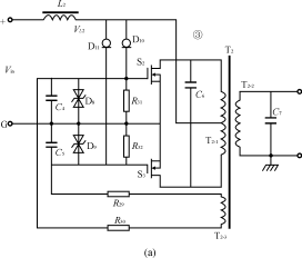圖5DC/AC高頻變換電路 (a)電路原理圖(b)電路工作波形