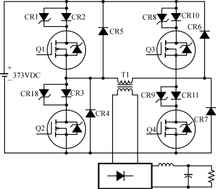 圖3用MOSFET作為開關(guān)的1?25kW全橋變換器電路簡圖(原圖,未作格式處理)
