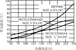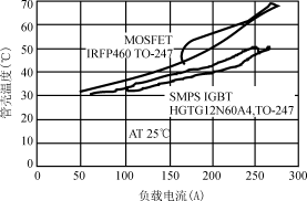 圖5在50℃環(huán)境溫度下,SMPSIGBT與MOSFET最高管殼溫度比較