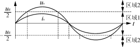 圖2??? TL整流器波形 ??? 每個半橋均有三種工作狀態(tài),整個TL橋共有32=9個狀態(tài)。分別如下:???? ??? 狀態(tài)0(1,1)??? 開關(guān)管V11,V12,V31,V32開通,變換器交流側(cè)電壓uAB等于0,電容通過直流側(cè)負載放電,線路電流is的大小隨主電路電壓us的變化而增加或減小。 ??? 狀態(tài)1(1,0)??? 開關(guān)管V11,V12,V32,V41開通,交流側(cè)輸入電壓uAB等于ud/2,輸入端電感電壓等于us-u1。電容C1電壓被正向(或反向)電流充電(u1<us,或放電us<u1),C2通過直流側(cè)負載放電。 ??? 狀態(tài)2(1,-1)??? 開關(guān)管V11,V12,V41,V42開通,輸入電壓uAB=ud,正向(或反向)電流對電容C1及C2充電(或放電),由于輸入電感電壓反向,電流is逐漸減小。 ??? 狀態(tài)3(0,1)??? 開關(guān)管V12,V21,V31,V32開通,交流側(cè)輸入電壓uAB等于-ud/2,輸入電感上電壓等于us+u1。電容電壓被正向(或反向)電流充電(或放電)。 ??? 狀態(tài)4(0,0)??? 開關(guān)管V12,V21,V32,V41開通,輸入端電壓為0,電容通過直流側(cè)負載放電,線路電流is的大小隨主電路電壓us的變化而增加或減小。 ??? 狀態(tài)5(0,-1)??? 開關(guān)管V12,V21,V41,V42開通,交流側(cè)電壓為ud/2,正向(或反向)電流對電容C2充電(或放電),電容C1通過負載電流放電。 ??? 狀態(tài)6(-1,1)??? 開關(guān)管V21,V22,V31,V32開通,uAB=-ud,正向(或反向)線電流對兩個電容C1及C2充電(或放電),由于升壓電感電壓正向,線電流將逐漸增加。 ??? 狀態(tài)7(-1,0)??? 開關(guān)管V21,V22,V32,V41開通,交流側(cè)電壓電平為-ud/2,正向(或反向)電流對電容C2充電(或放電),電容C1通過負載電流放電。 ??? 狀態(tài)8(-1,-1)??? 開關(guān)管V21,V22,V41,V42開通,輸入端電壓為0,升壓電感電壓等于us,兩個電容C1及C2均通過負載電流放電。電流is根據(jù)電壓us的變化而增加(或減小)。 2??? 硬件電路設(shè)計 ??? 從圖2可以看出,在輸入電壓頻率恒定的情況下,要在變換器交流側(cè)產(chǎn)生一個三電平電壓波形,輸入電壓一個周期內(nèi)應(yīng)定義兩個操作范圍:區(qū)域1和區(qū)域2,如圖3所示。