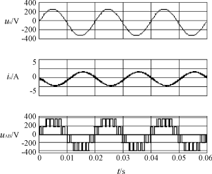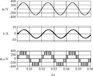 當整流器進入穩(wěn)態(tài)工作狀態(tài)后,輸出直流電壓恒定,整流橋的三相橋臂按正弦的脈寬調(diào)制規(guī)律驅(qū)動。