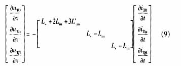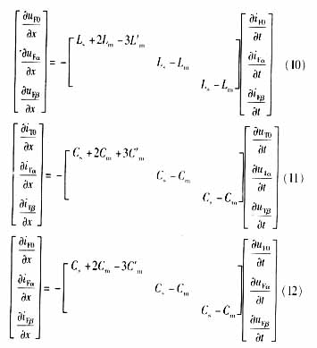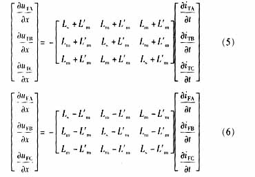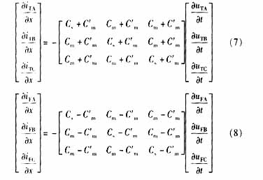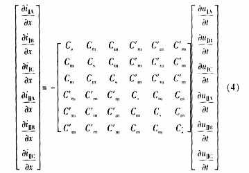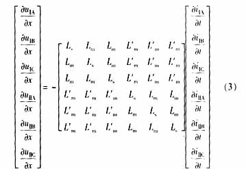 ??? 如果將同桿雙回線的輸電線看成均勻傳輸線,在考慮同桿雙回線間的互感和線間電容時(shí),其傳輸線方程為: