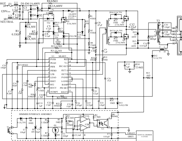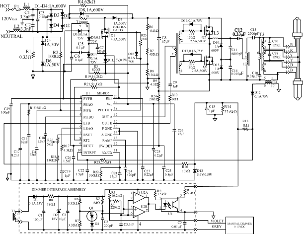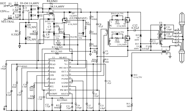 用ML4835設(shè)計室內(nèi)可調(diào)光小型熒光燈電子鎮(zhèn)流器