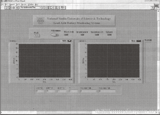 在圖形化介面方面有下列特點:1.可隨時監(jiān)控電池端的電壓與電流,同時可計算其內(nèi)阻值的變化,與即時顯示電池殘余容量,并記錄成Excel檔案可供使用者隨時觀看得知電池電量的變化狀況;2.系統(tǒng)中具有警示的功能,當(dāng)電池發(fā)生異常時,系統(tǒng)將會偵測錯誤以顯示錯誤情況;并送信號給數(shù)位信號處理器令其停止充電或放電,同時告知用戶端發(fā)生異常的狀況。
