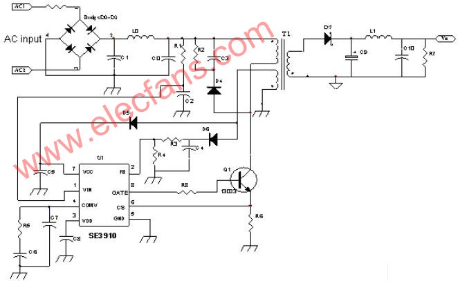 工作于典型的反激電路拓?fù)渲?,?gòu)成簡潔的 AC/DC電源轉(zhuǎn)換