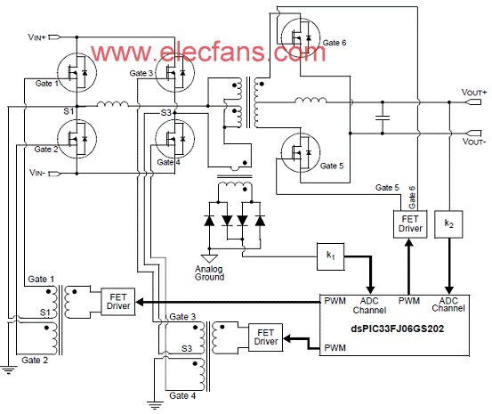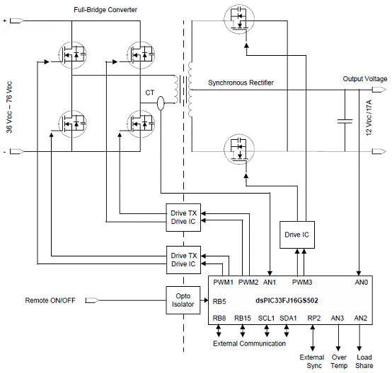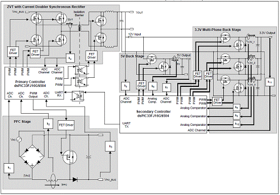 圖10。dsPIC33FJ 相移全橋(PSFB)轉(zhuǎn)換器框圖