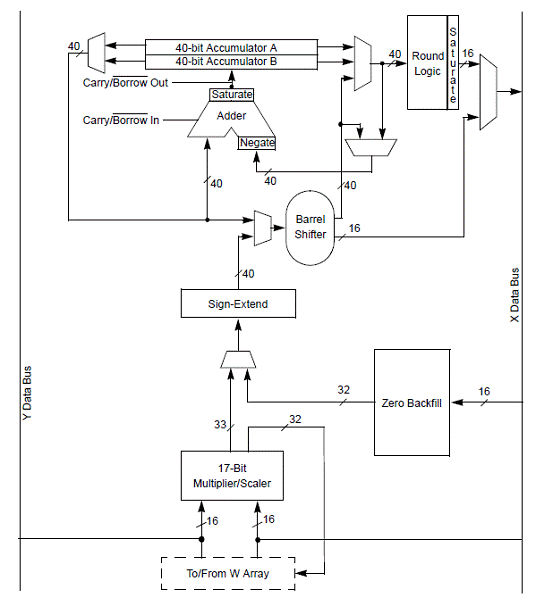 ? Two 40-Bit Accumulators with Rounding and Saturation Options