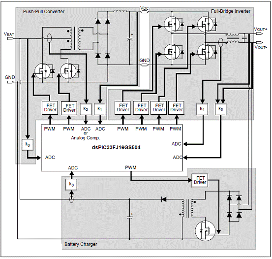 圖8。dsPIC33FJ 離線UPS框圖