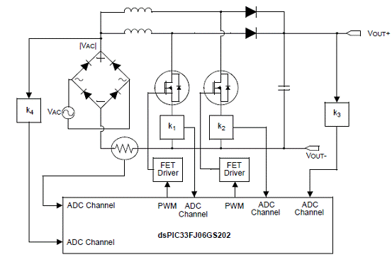 圖4。dsPIC33FJ 數(shù)字PFC框圖