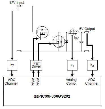 圖6。dsPIC33FJ 單相同步降壓轉(zhuǎn)換器框圖