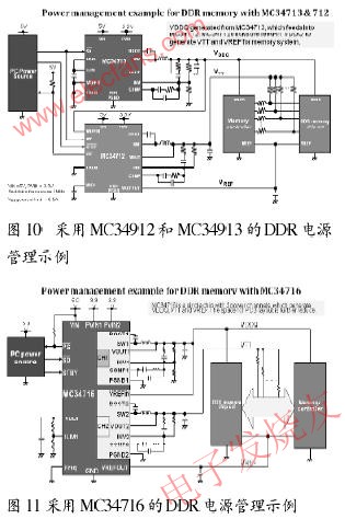 圖10為采用MC34712 & MC34713的DDR電源管理的應用示例。