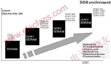 除了眾所周知的PC應用,DDR存儲器還廣泛用于高速并對存儲器提出高要求的應用中,如:圖形卡、刀片式服務器、網(wǎng)絡裝置和通信裝置等。