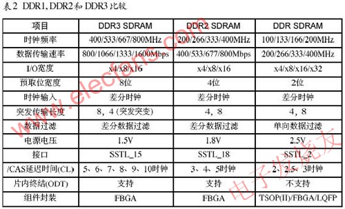 為了對DDR1、DDR2和DDR3 SDRAM間的差異進行比較,參考表2。