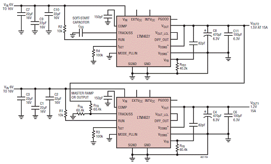 1414 LTM4662 Demo Circuit - Dual High Efficiency Buck Regulator (4.5-20V to 1.2V @ 15A & 1.5V @ 15A)