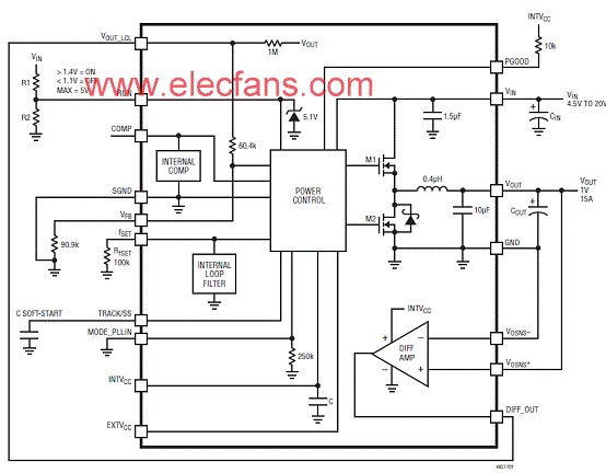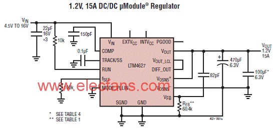 LTM4627應用電路(1.2V 15A開關穩(wěn)壓電源電路)