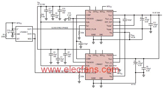 6 LTM4627演示電路-兩相并聯15A DCDC模塊穩(wěn)壓器(7-16V至0.9V@30A)